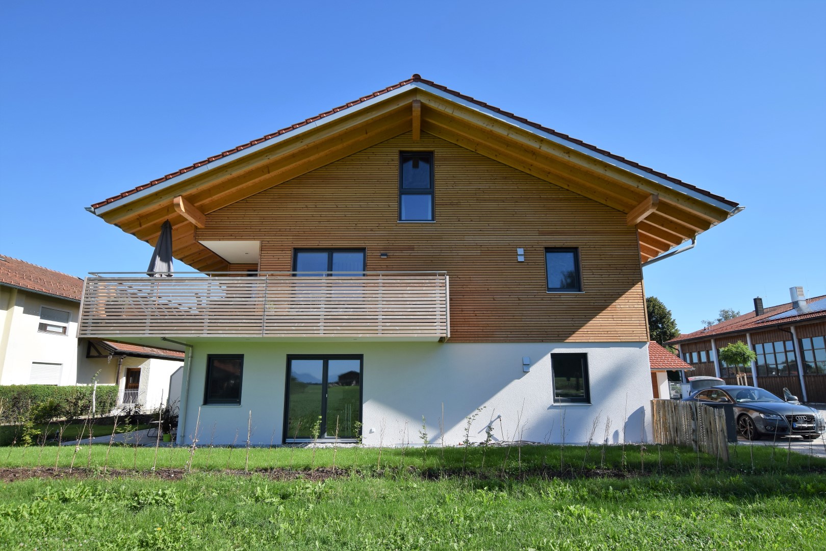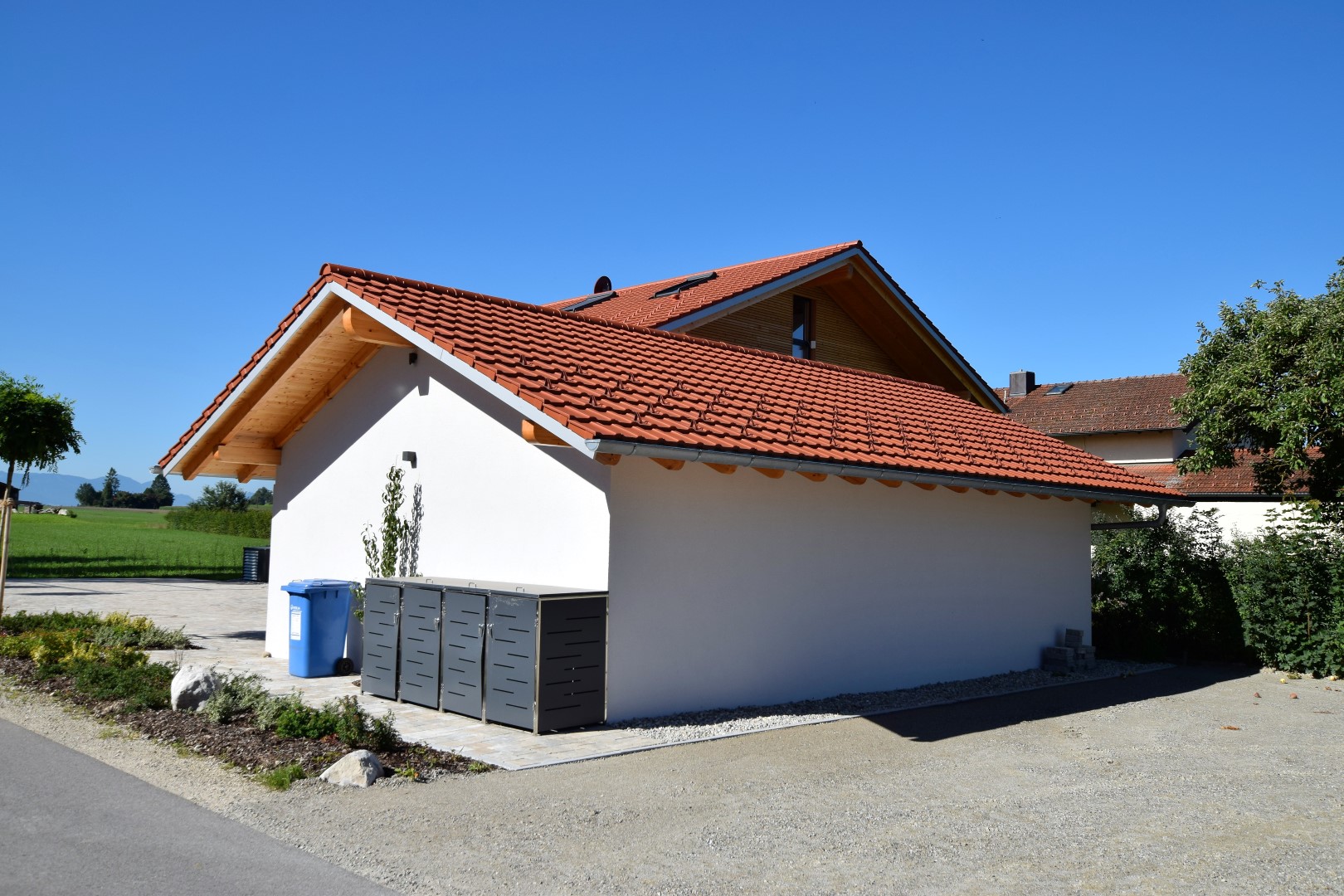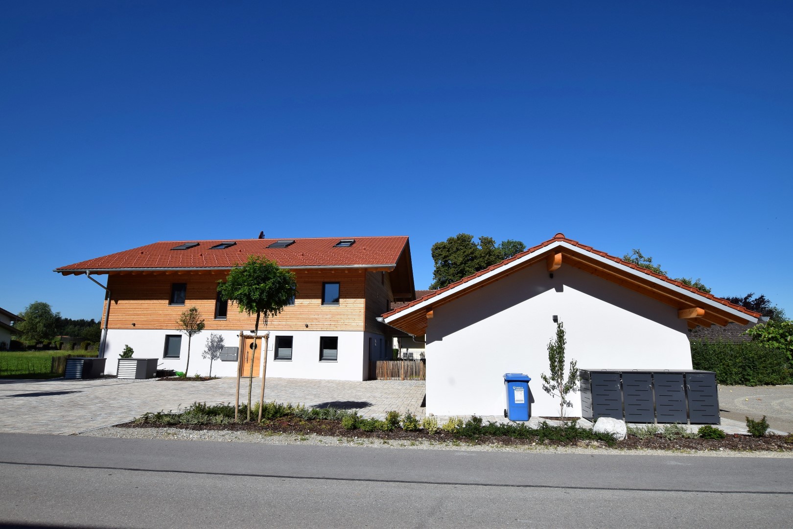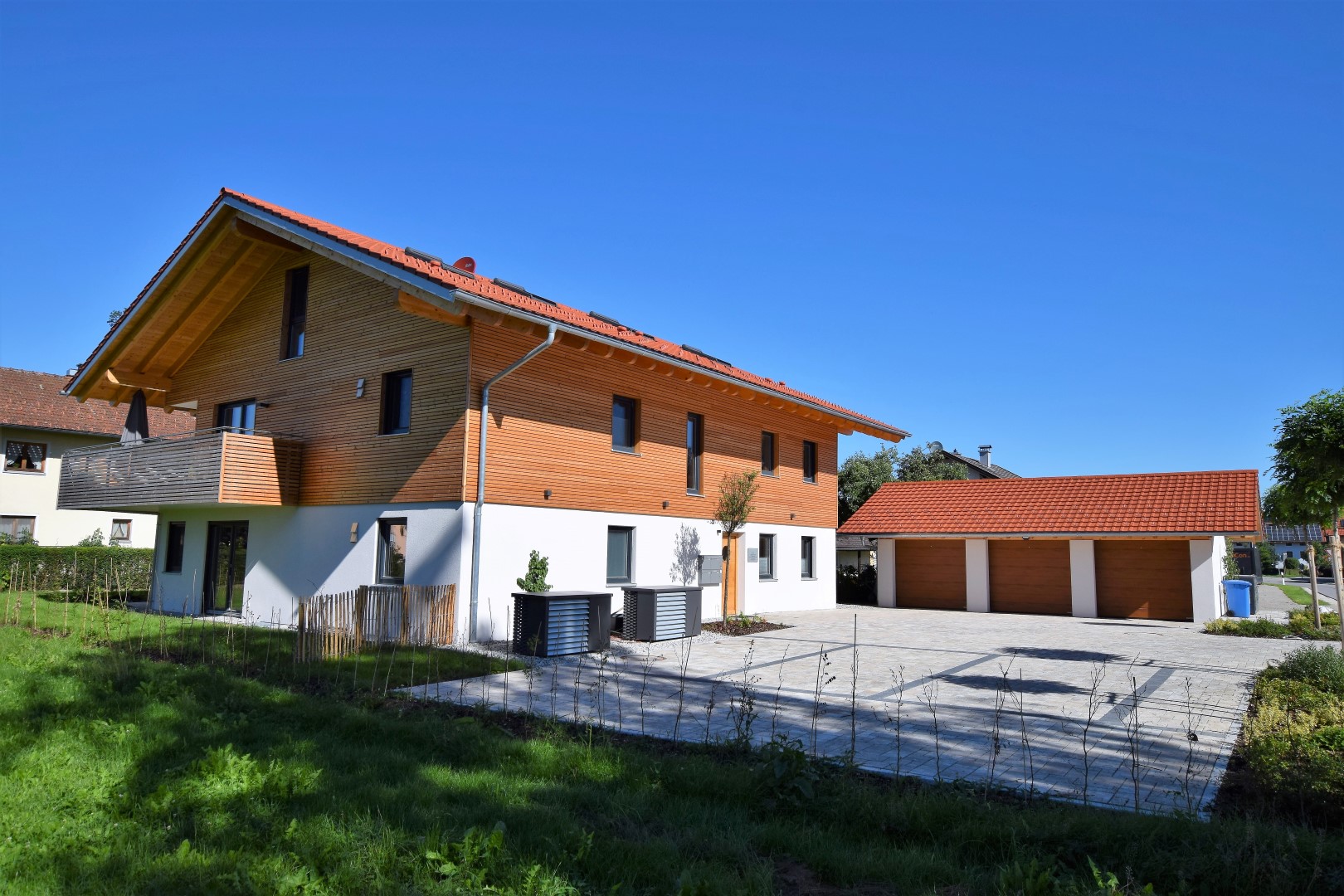 Geschäfts- und Wohngebäude mit 3 Wohneinheiten und einer Praxis sowie Dreifachgarage.